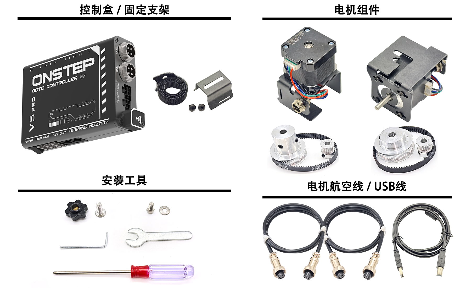 专为信达EQ3D设计的GOTO套件,使用功能强大的OnStep V5 Pro控制盒,配备USB HUB , DC供电输出,使用高性能双天线设计,远距离稳定连接。可扩展电调焦和旋转器。搭载TMC2209驱动,拥有高精度和静音效果。双航空头设计,使得电机和控制盒之间有稳定牢固的连接。