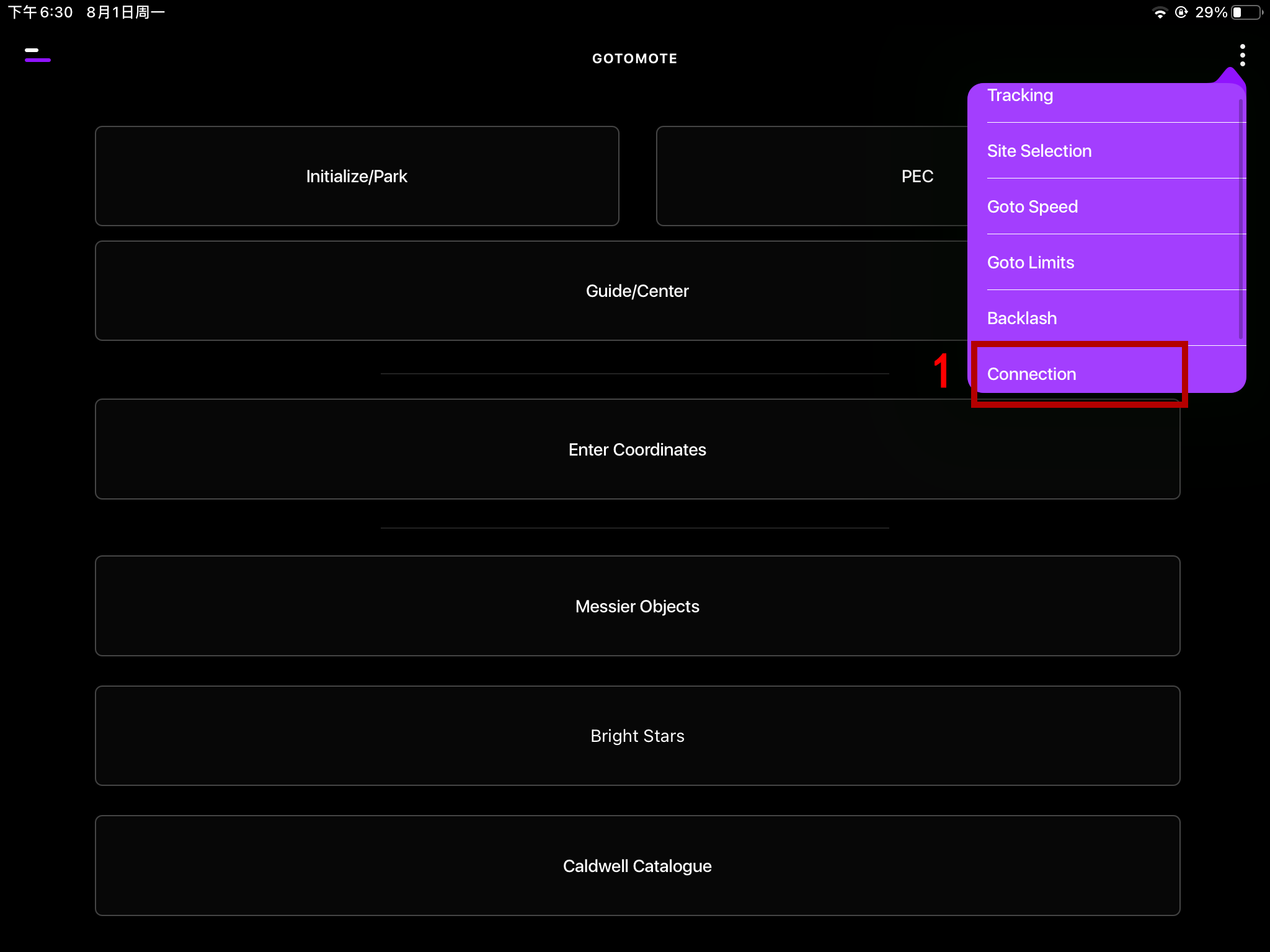 1.点击Connect,等待连接成功,点击GOTO将使望远镜移动到目标,Align可在微调位置后进行校准