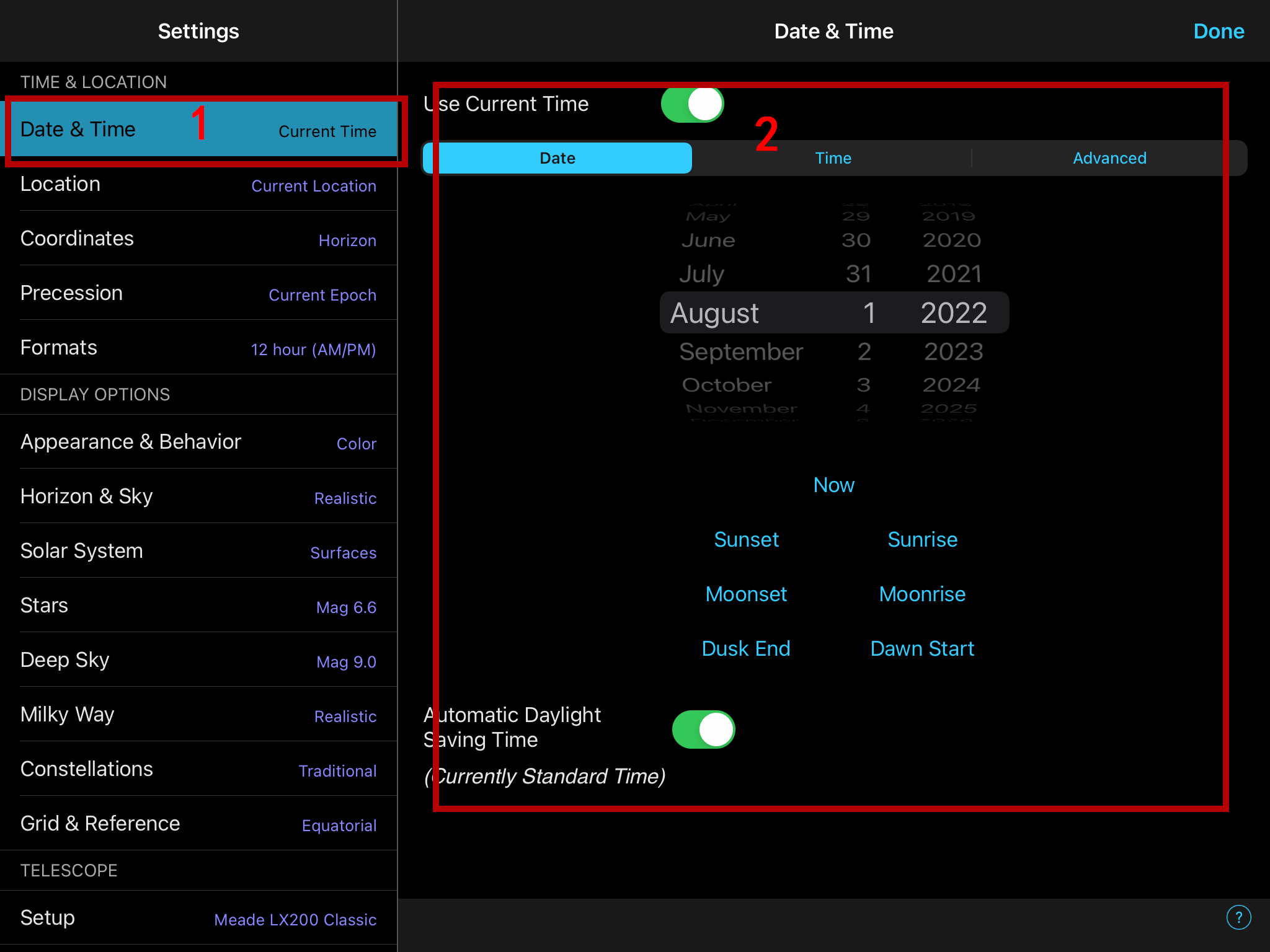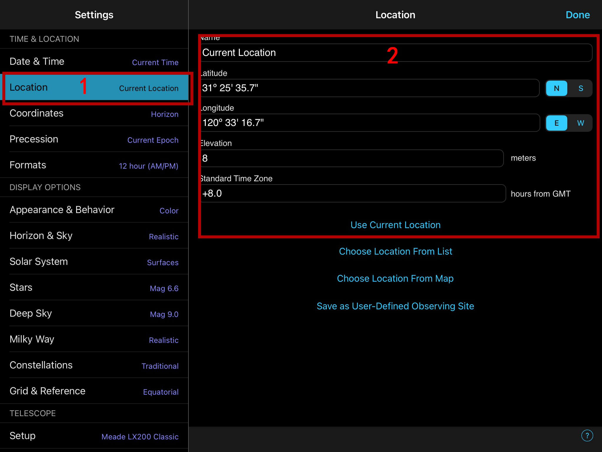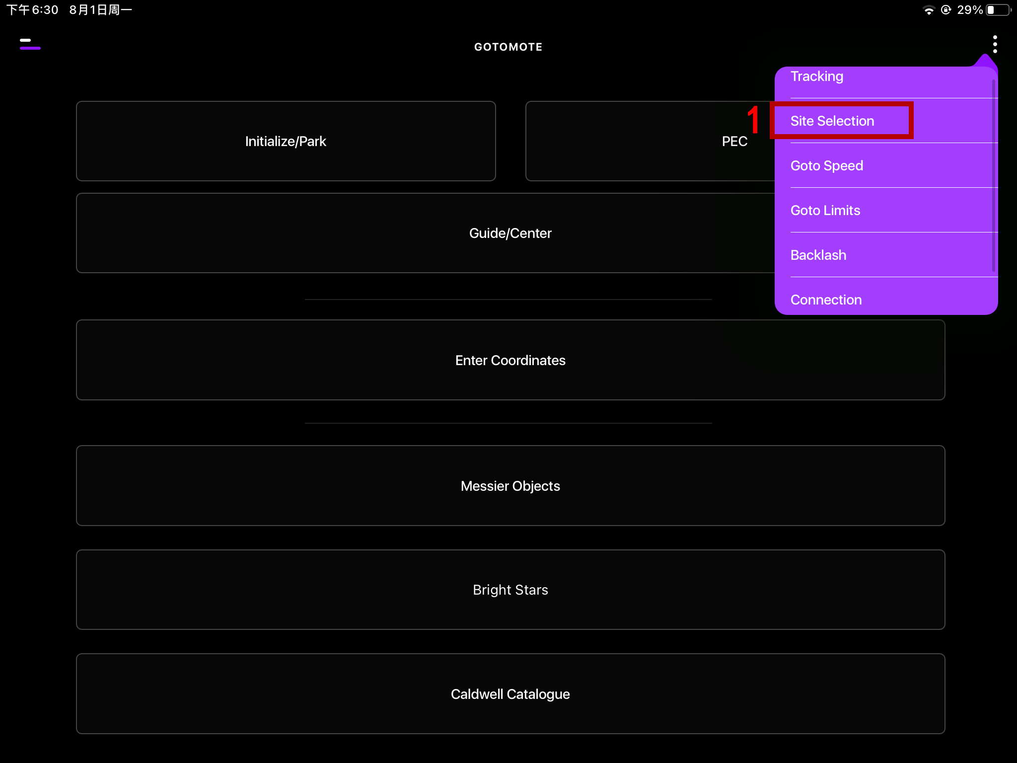 2.根据观测地点正确设置经纬度,否则将导致GOTO失败。