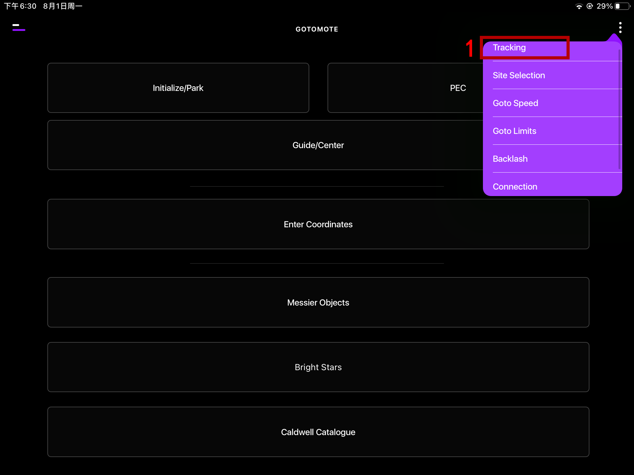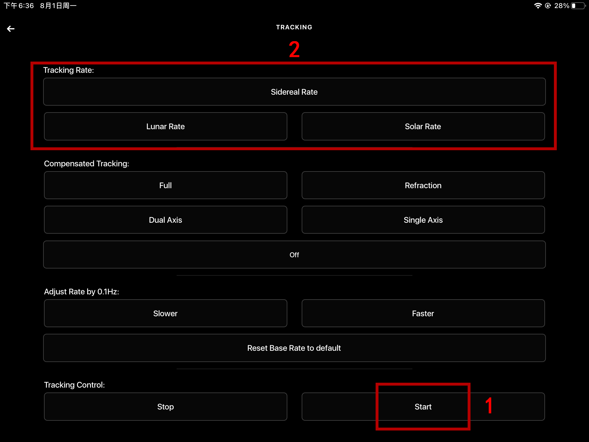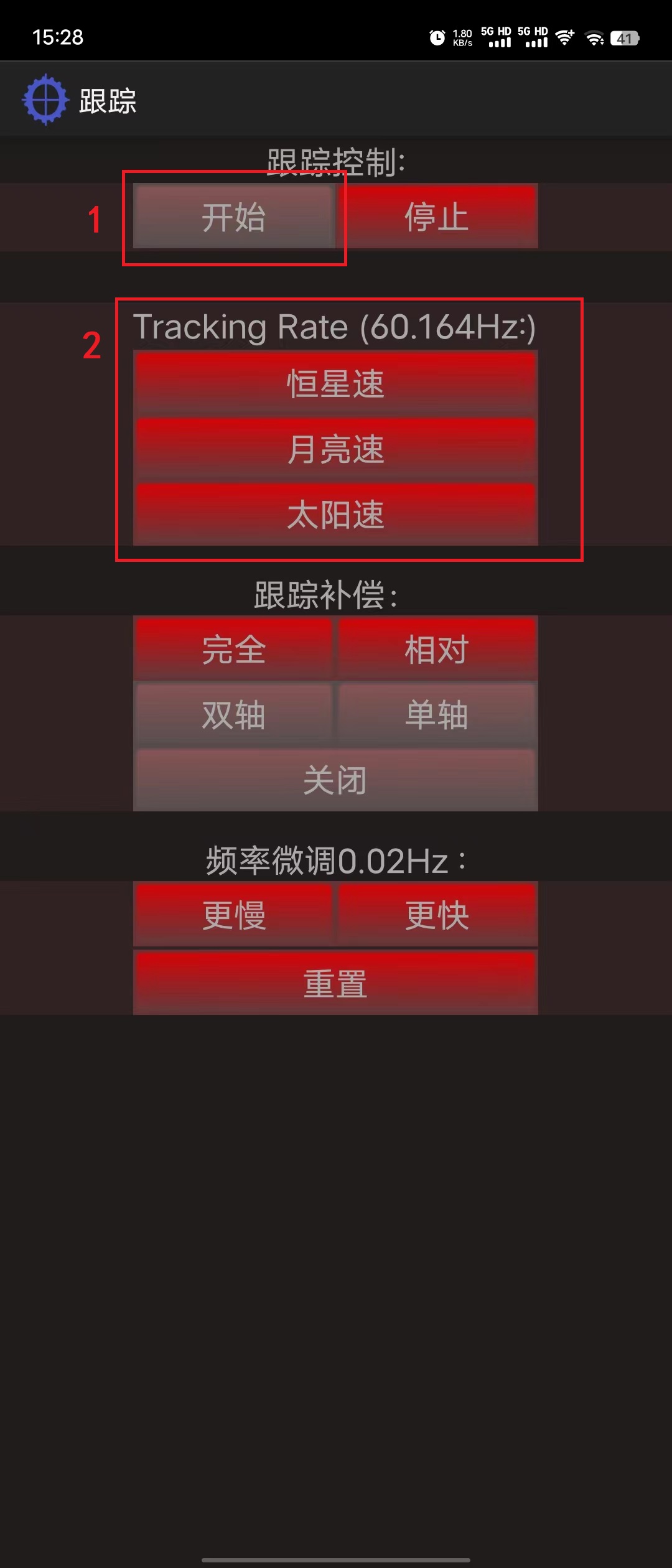 2.可以选择跟踪速度,分别为恒星速/月亮速/太阳速
