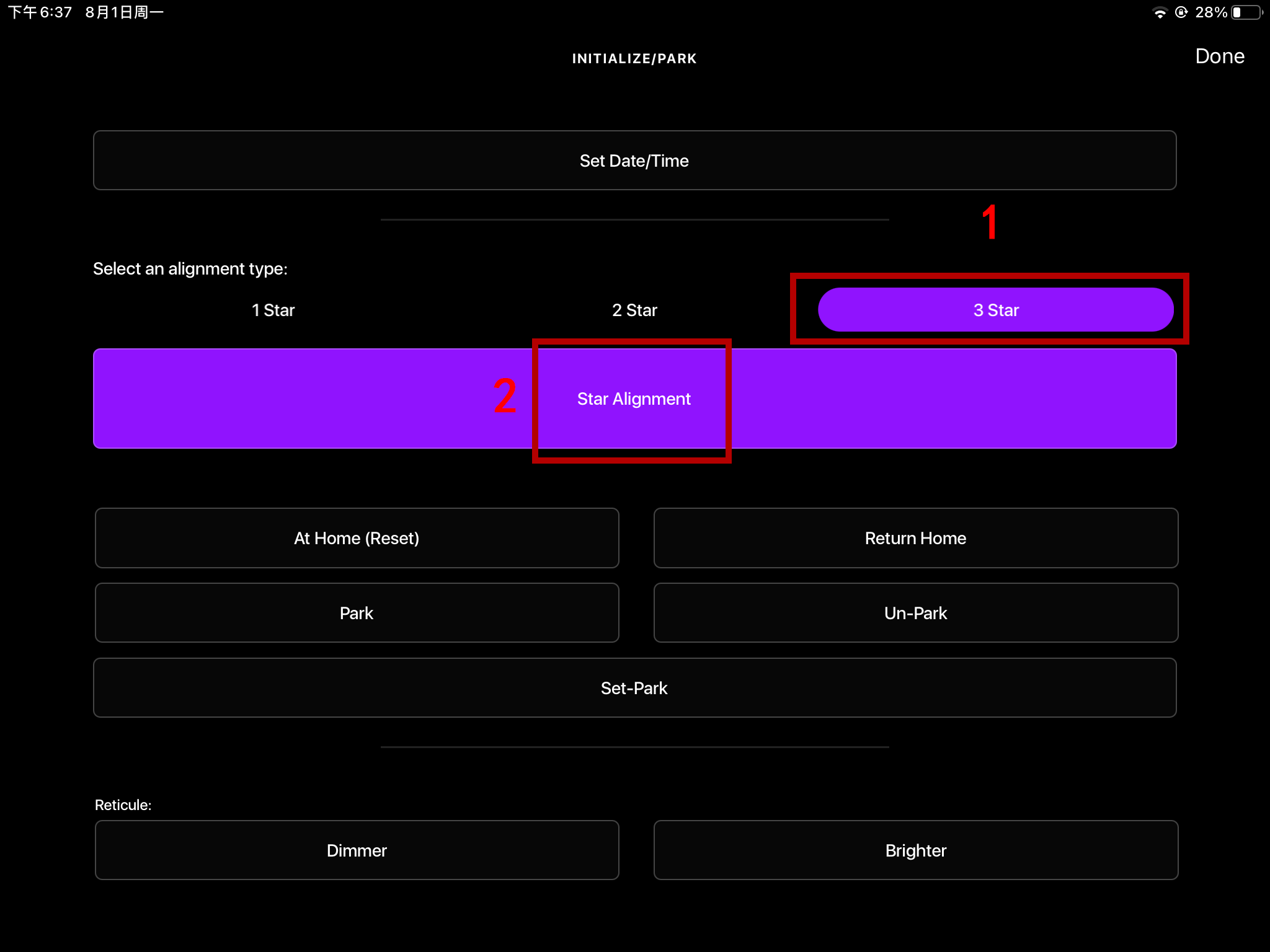 1.在Initialize界面中,选择 1-3 Star进行1到3星的校准