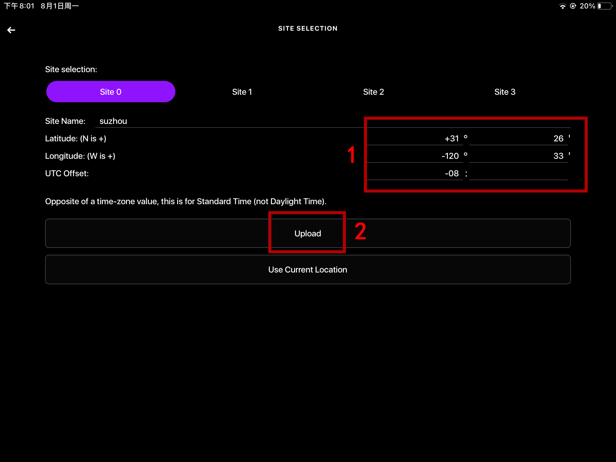 1.以苏州为例,输入观测地经纬度,注意是度/分/秒格式,不是小数点格式。维度前面写正号为北纬,经度前面写负号为东经,UTC时间前面写负号