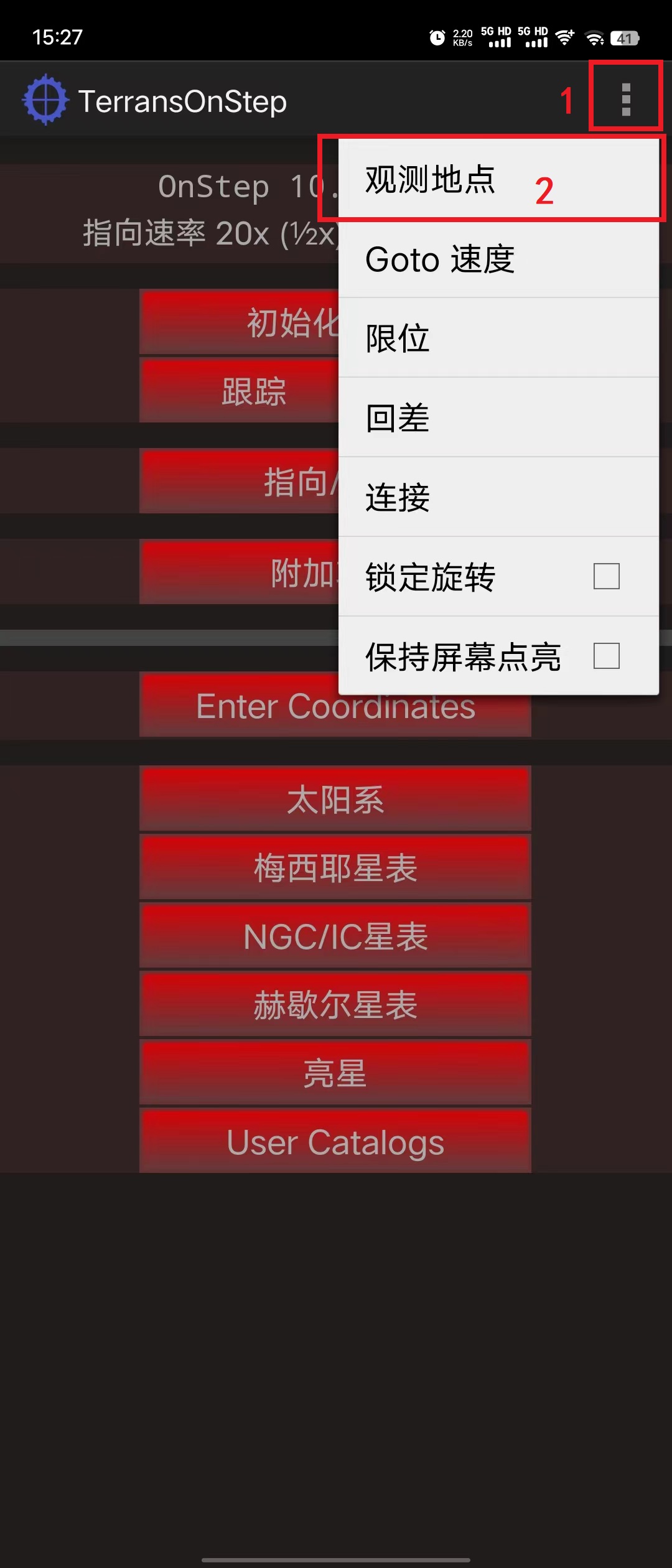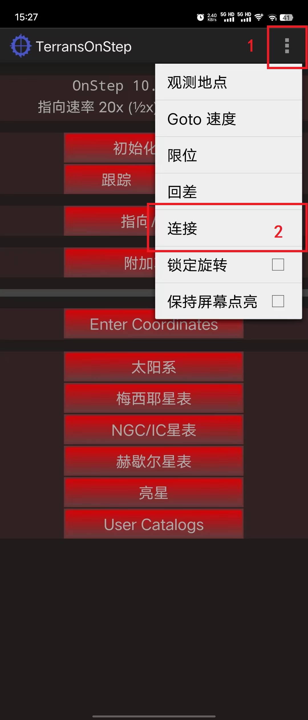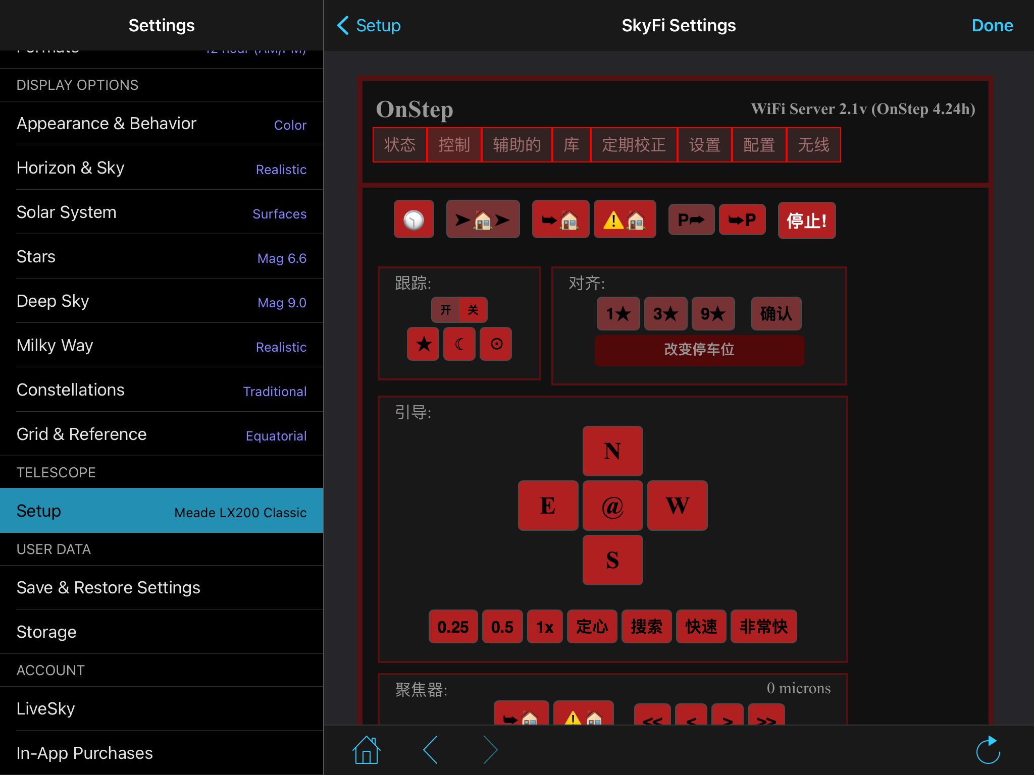 使用WIFI连接,先将手机连接到ONSTEP的WIFI热点。