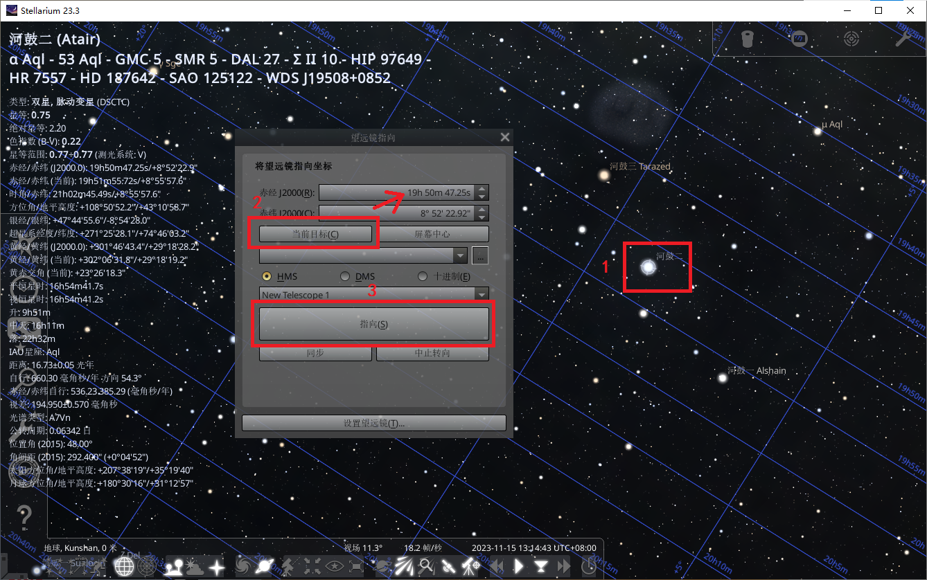 3.点击指向,望远镜开始移动,等待望远镜移动到目标。
