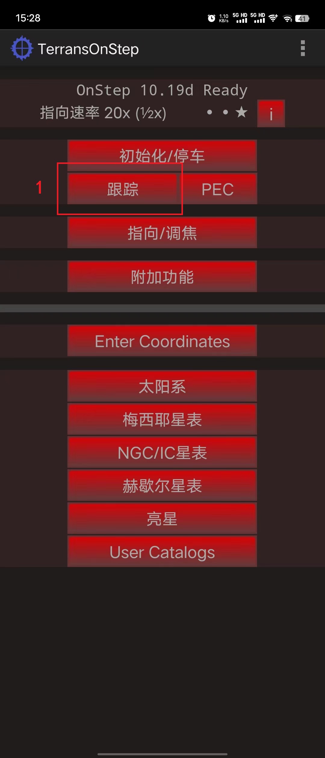使用之前,请先将ONSTEP控制盒通过USB线连接到电脑,插入电源,并设置好时间地点,对准极轴,有条件时进行三星校准。