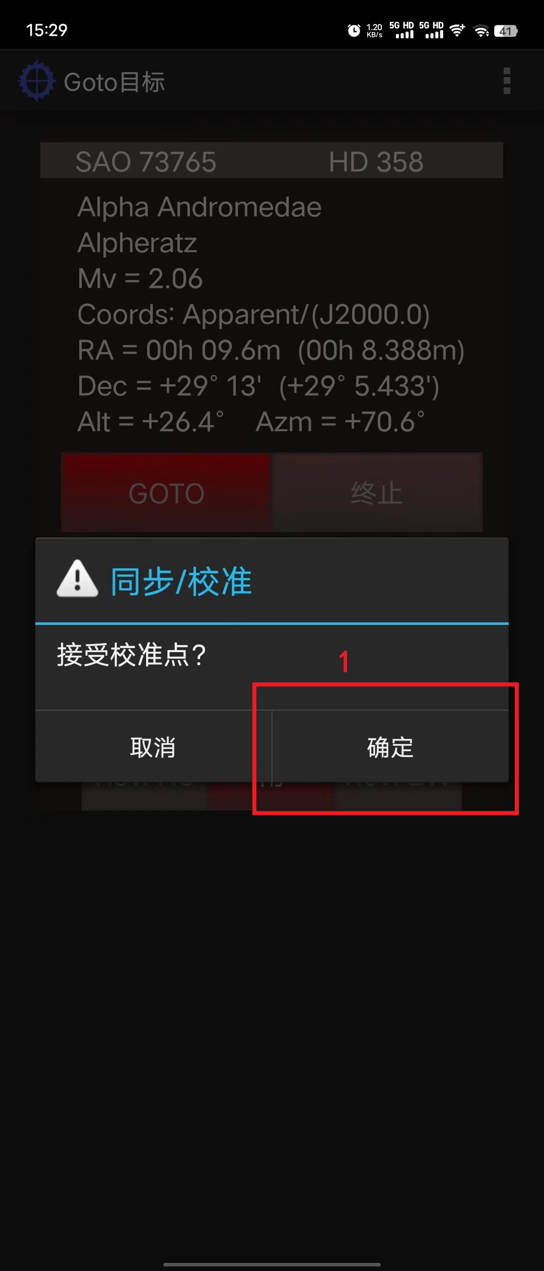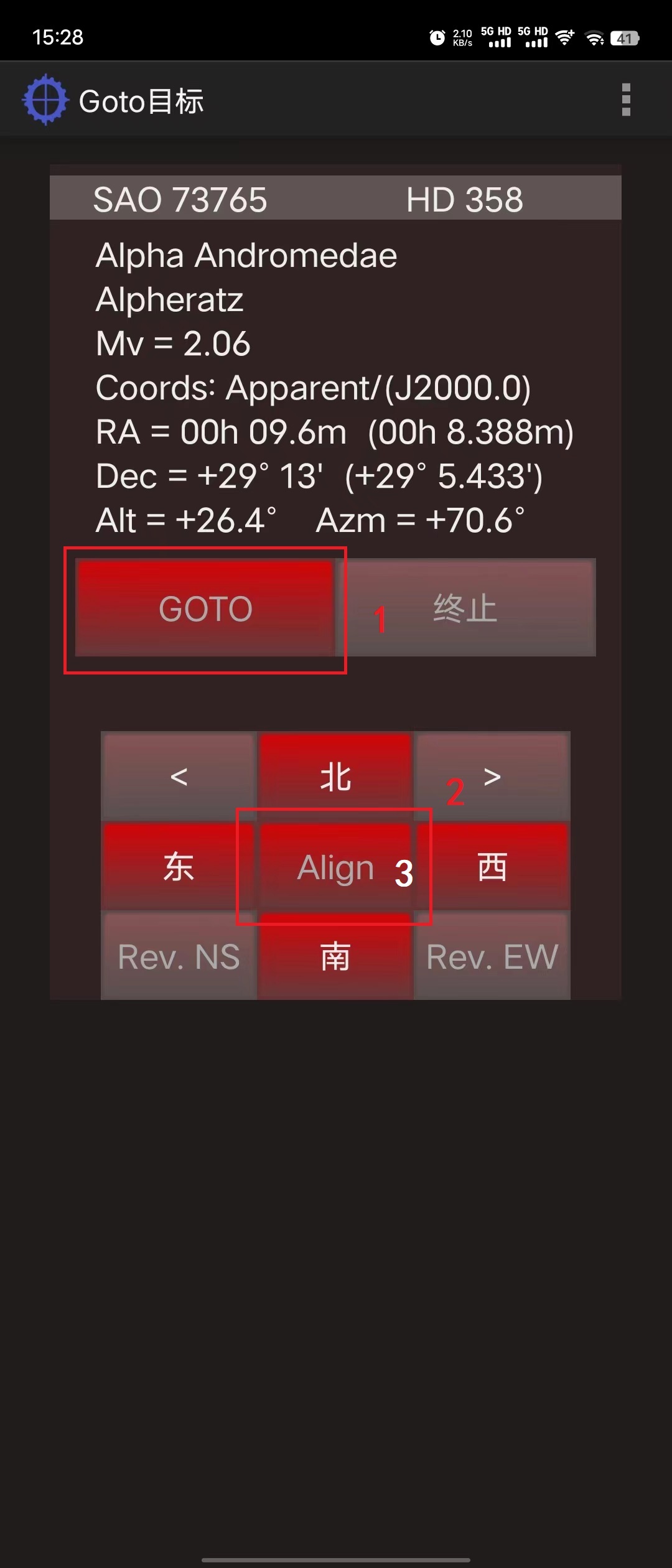 2.点击GOTO按钮进行GOTO,望远镜开始移动