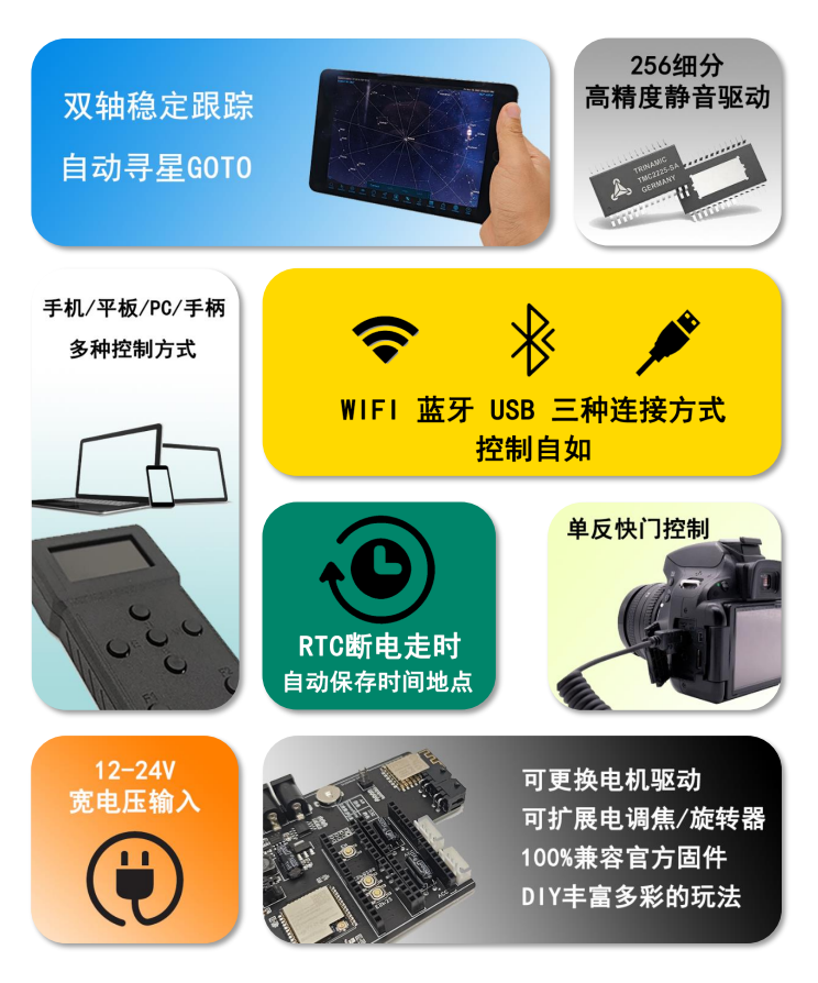 ● 双轴静音驱动步进电机 GOTO 跟踪